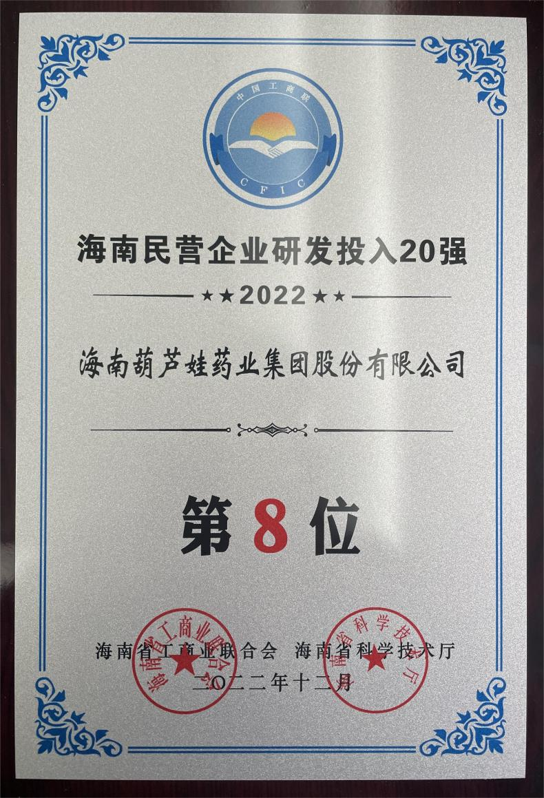 12月23日,2022海南民营企业50强和研发投入20强发布会在海口举行。会上发布了“2022海南民营企业50强”“2022海南民营企业研发投入20强”榜单和分析报告。人生就是搏药业再次荣登两榜,在海南民营企业50强榜单中位列第25位,较去年上升8位,这也是公司连续三年登榜;在海南民营企业研发投入20强中位列第8位,较去年上升7位。