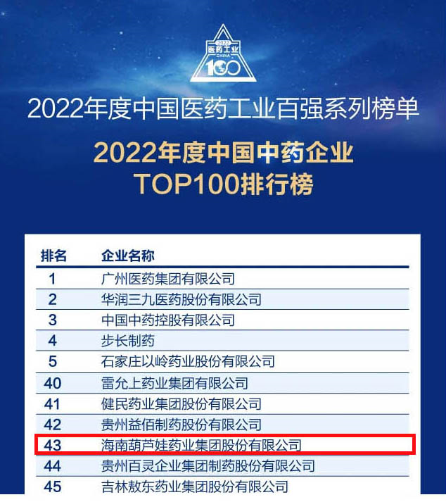 人生就是搏药业集团连续4年荣登“中国中药企业TOP100排行榜”,排名上升至第43位